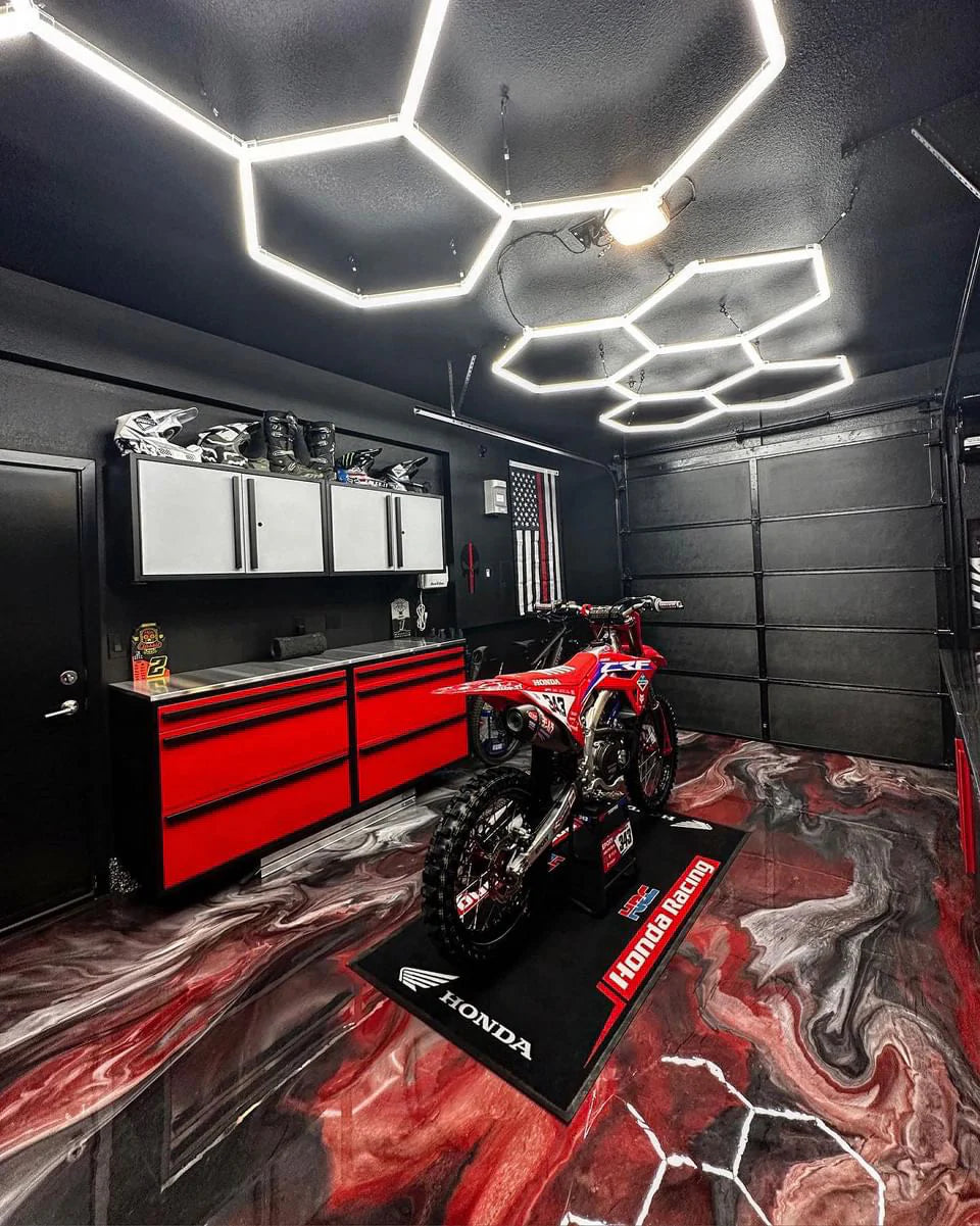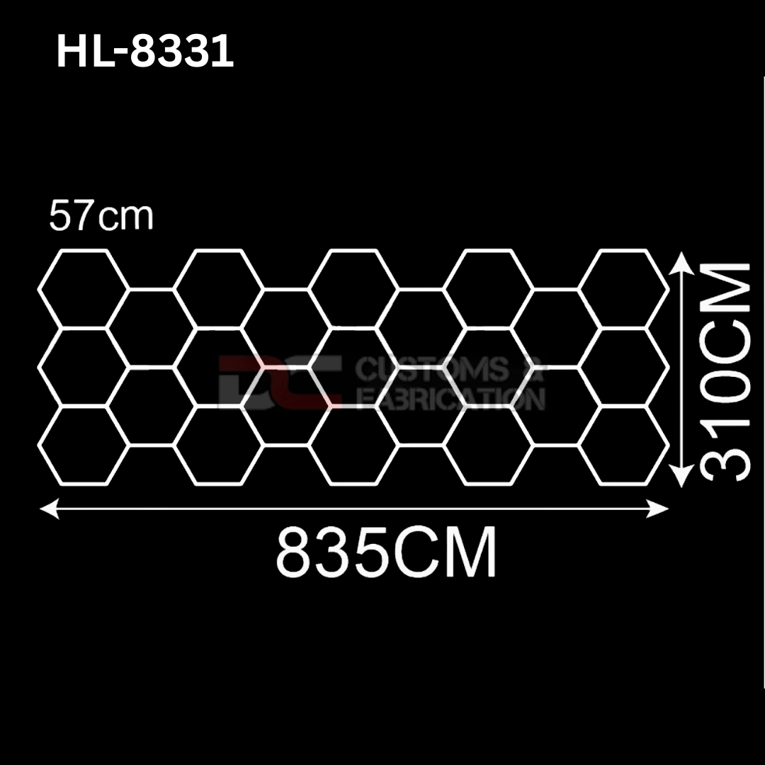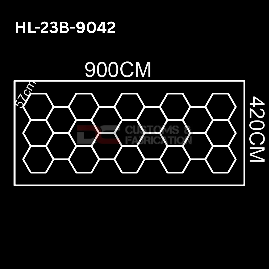 ultra-bright LED hex panels with a sleek rectangular border, designed for easy assembly and flexible installation. It can be mounted or suspended to perfectly fit in garages, offices, studios, or gym spaces.Made popular within the automotive and detailing industry, luxurious, modern aesthetic while providing exceptional brightness and functionality—the perfect upgrade for any professional or enthusiast space.